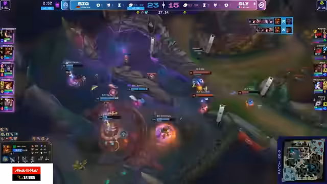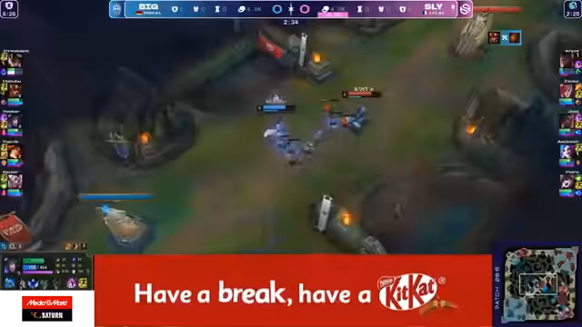 02:57:38Nach der 24-minütigen Niederlage von Big mit einem klaren Goldvorteil von Solari wird die Niederlage aufgesplittert. Hauptgrund ist der fehlende Goldtransfer von den Kills, die überwiegend vom Pantheon und nicht vom AD-Carry geholt wurden. Wichtigste Faktoren waren die schlechten Rotations von Big und der Levelvorteil von Solaris Jungle, der es ihnen ermöglichte, immer einen Schritt voraus zu sein.