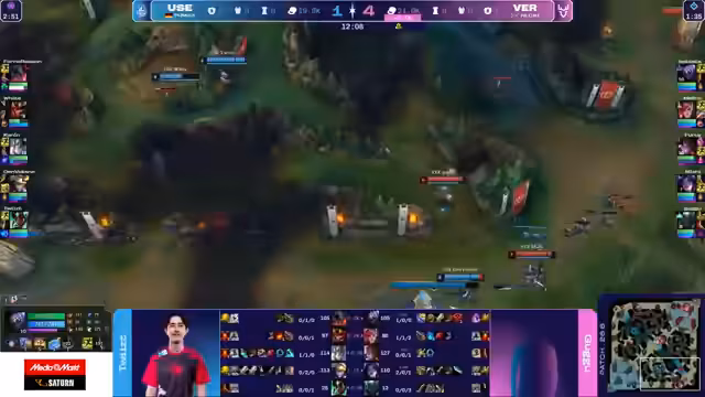 00:38:43Das Early-Game der Unicorns gegen Verdant suboptimal. Die Mid-Lane von Kanin und die Bot-Lane der Unicorns geben anfangs Gold und Farm ab. White, der Jungler der Unicorns, zeigt jedoch starke Map-Kontrolle, indem er gegnerischen Jungle-Dominanz neutralisiert und eigenes Farming sicherstellt. Trotz anfänglicher Nachteile bleibt das Team geduldig und setzt auf Teamkämpfe und Objective-Kontrolle, um ins Spiel zurückzufinden.