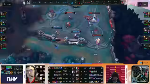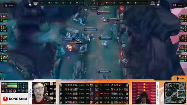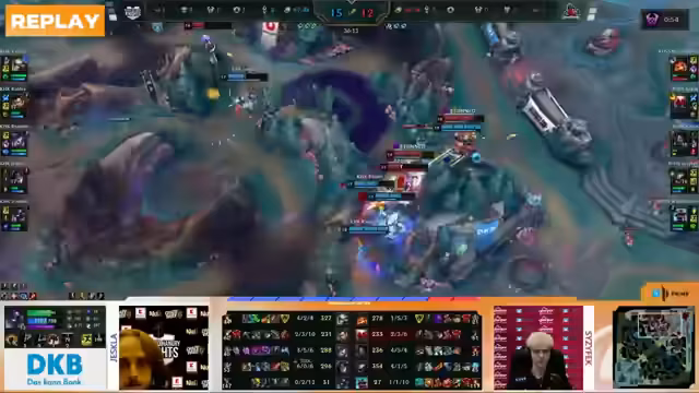04:08:59Ein fulminanter Teamfight entbrennt um den Nashor. Rossmann initiiert aggressiv, doch Kaufland mit seiner starken Kaiser und guter Positionierung kann dem Stand halten. Die Frontline von Kaufland bricht zusammen, aber ein ultimatives Manöver von Benur rettet die Situation kurzzeitig. Es folgt ein blutiger Schlagabtausch mit mehreren Todesfällen auf beiden Seiten, der am Ende mit einem 2-2 Trade endet. Die Situation bleibt extrem angespannt.