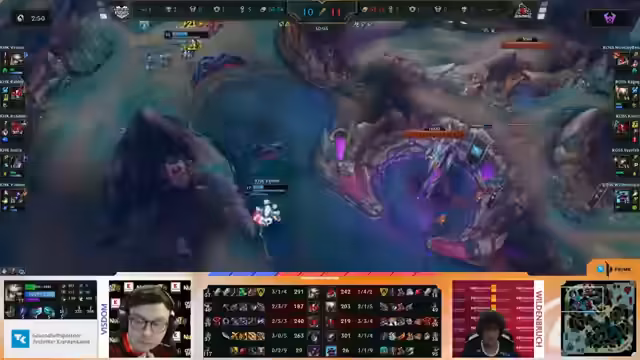 02:54:10KHK übernimmt zunehmend die Kontrolle über das Spiel durch überlegene Makro-Spielzüge und besser synchronisierte Bewegungen auf der Map. Sie nutzen den globalen Druck, um Objectives wie den Drake und den Herald sicherzunehmen. Rossmann wirkt überfordert und kann kaum Gegenargumente finden. Analysten bewundern die Geduld von KHK, die das Spiel kontrolliert und aus dem makrotechnischen Vorteil heraus erfolgreich Vorteile herausarbeitet, anstatt in riskante Fights zu gehen.