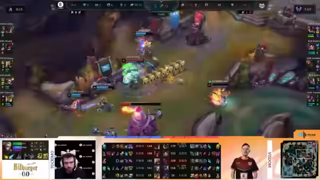 00:33:59Der Stream beginnt mit einer Übersicht des vergangenen Spieltags. Zuerst wird das Match zwischen Oswin Force Willhaben und Team Orange Gaming besprochen, welches Team Orange Gaming mit einem Double AD Carry-Comp nach 29,5 Minuten im ersten Spiel für sich entscheiden konnte. Anschließend wurde Austin Force im zweiten Spiel dominant und gewann auch das dritte Spiel nach 32 Minuten, um die Serie mit 2:1 zu für sich zu entscheiden. Zweites Match war Frankfurt gegen Unicorns. Die Unicorns, trotz einer eher schwachen Leistung im ersten Spiel, konnten die Serie mit 2:0 gewinnen und wichtige Punkte sammeln. Unicorns schafften damit den Sprung aus dem Tabellenkeller auf den geteilten sechsten Platz, während Frankfurt weiterhin ohne Punkte ist. Für die aktuelle Spieltag wurden dann drei Matches angekündigt: Eintracht Spandau gegen Dung Dynasty, EWI gegen Kaufland-Hangry Knights und parallel Big gegen Rossmann Centaurs. Des Weiteren wurden die wichtigsten Änderungen des neuen Patches 25.08 vorgestellt. So erhielt Way einen massiven Buff, Midlaner wie Ahri und Syndra wurden indirekt durch Nerfs der Basis-Schadenswerte und Buffs der Skalierung geschwächt, um den Rod of Ages-Build zu reduzieren. Zudem gab es wichtige Änderungen für das Item Kryptoblume, um es konkurrenzfähiger zu machen, und bei Deadman's Blade, die den Champions mit Slow-Resistance zugutekommt.
