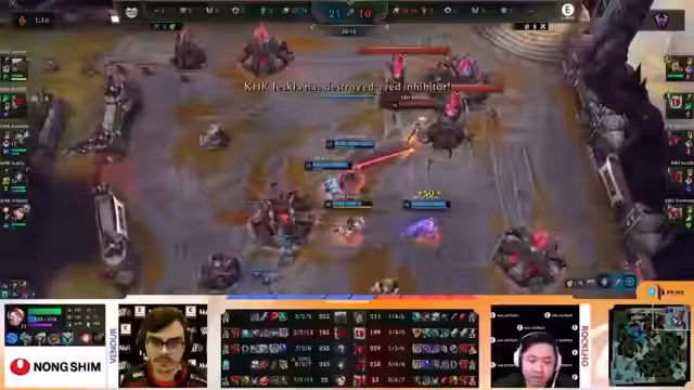 03:35:16Die Dominanz des Viktors von KHK setzt sich fort. Random, der Viktor-Spieler, sammelt Kill um Kill und steht am Ende mit einem sehr hohen Kill-Zähler undItemList. EWI versucht, in Teamfights mit ihren Carries Aphro-Boy und Relative durchzubrechen, scheitert jedoch an der besseren Positionierung und dem höheren Schadensoutput von KHK. EWI kämpft auch mit einem verpassten Reset in einem Teamfight, der den Kipppunkt darstellt. Die Analyse betont die unfaire Match-up-Situation, da der Viktor mit über 3000 HP kaum noch ein Ziel für Resets darstellt.