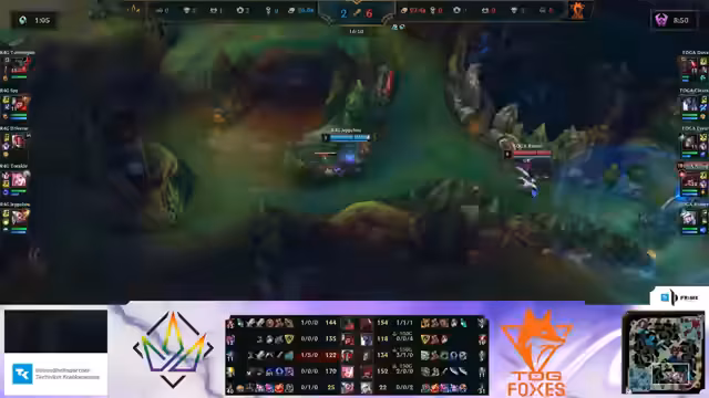 00:51:34Nach einem frühen First Blood und einigen Lane-Trades etablierte sich ein ausgeglichenes Spiel. Der Wendepunkt fiel nach knapp 13 Minuten, als Ragnum4Games einen Teamfight verloren und dabei mehrere Mitglieder sterben. Team Orange Gaming nutzte den daraus resultierenden Vorteil, um den Rift Herald und den ersten Drachen zu kontrollieren. Der Goldunterschied blieb zunächst gering, doch TOGA baute seinen Druck durch konsequentes Objective-Management kontinuierlich aus, was zu einer drastischen Goldverschiebe und dem vollständigen Kontrollverlust für R4G führte.