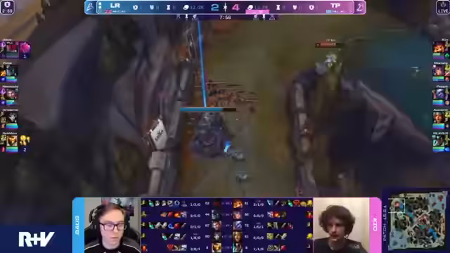 02:38:33Die Analysten vergleichen die Drafts beider Teams und stellen fest, dass Team Phantasma (TP) eine sehr starke Push-Prio besitzt, während Los Ratonis (LR) aggressiver vorgeht. Das Early-Game verläuft zunächst für TP vorteilhaft, Peppe mit Tristana erarbeitet sich einen Lead. Allerdings zeigen sich erste Probleme, als Bard im Bot-Lane extrem stark ist und mehr Schaden anrichtet als die anderen Supports. Die 'Reset City'-Mechanik von Tristana wird als wichtigster Faktor für den Snowball-Charakter der Partie identifiziert.