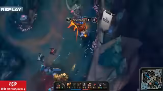 00:23:00Ein erstes großes Teamfight ereignet sich um den ersten Drachen. KC Blue führt einen 3-4-Push durch und dominiert den Fight, wobei jeder Spieler einen Kill erzielt, mit Ausnahme von Yukino. Dies gibt KC Blue einen deutlichen Goldvorsprung. Der Kommentator analysiert den Kampf und stellt fest, dass es an Heretics lag, zu früh einzusteigen. Tracen von Heretics versucht, als primäre Winning Condition das Spiel zu tragen, indem er Kills sammelt und einen Riftmaker baut. Ein weiterer Teamfight führt zu einem legendären Kill, bei dem Piero von KC Blue Tracen überfährt, was die Überlegenheit von KC Blue unterstreicht und den Goldunterschied vergrößert.