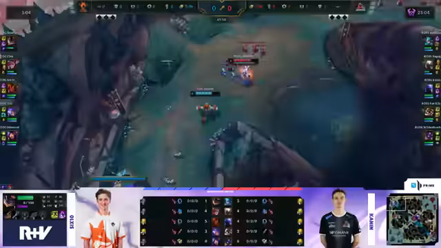 03:35:20Das Spiel bleibt bis zum Level-6-Spike ereignisarm, ohne erste Kills. Beide Teams bleiben auf der Top-Seite aktiv und planen die nächsten Züge. Nachdem der zweite Drache spawnen wird, stellt sich die Frage, ob T.O.G. der Kontrolle darüber vor ROSmann entgehen kann. ROSmann scheint hier Druck auszuüben und einen All-In zu riskieren. Kanin von T.O.G. wird in einem Kampf niedergemacht, während Smurfel von ROSmann ebenfalls stirbt. Der Kampf um den Drachen und die daraus resultierenden Vorteile stehen im Mittelpunkt.