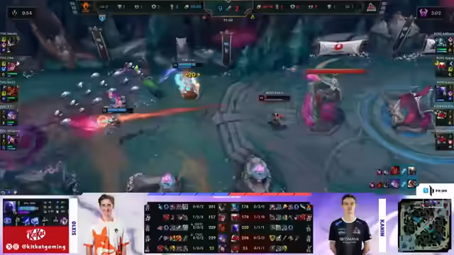 02:08:15Ein Fight entbrennt um den Drachen, der zweiseitig wird. Seaboy rettet mit einem gezielten Save-Action die Situation. Sixten zeigt mit einem Catch gegen Xarok seine Klasse, bleibt aber ohne Flash gefangen. Dieser Fehler ist fatal, führt zum Tod des Junglers und lässt den Fight für TOG kollabieren. Sie belohnen sich dafür mit dem Drachen und bauen einen klaren Goldvorsprung von 5.500 Gold aus.