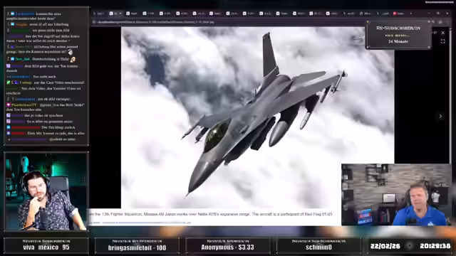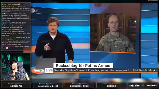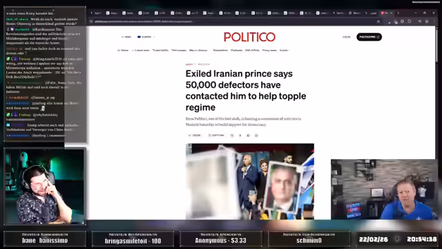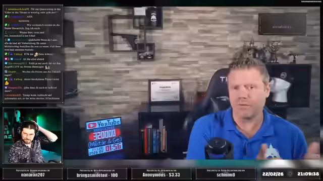 00:13:18Der Stream beginnt mit einer kritischen Auseinandersetzung der US-amerikanischen Politik. Zunächst wird eine bedeutende rechtliche Niederlage von Donald Trump thematisiert, bei der der Oberste Gerichtshof seine Zollmaßnahmen kippte und ihm somit eines seiner wichtigsten Machtinstrumente entzog. Unmittelbar danach rückt die angespannte Situation im Nahen Osten in den Fokus. Es wird über den massiven militärischen Aufmarsch der USA und Israels in Richtung Iran berichtet, darunter die Verlegung zweier Flugzeugträgerkampfgruppen und hunderte Kampfflugzeuge. Die laufenden Verhandlungen in Genf und das Ultimatum an den Iran stehen im direkten Zusammenhang mit dieser militärischen Konzentration, was eine unmittelbare Eskalation wahrscheinlich erscheinen lässt.