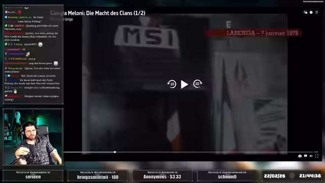 01:31:31Giorgia Meloni sieht sich als Gründerin einer neuen neopopulistischen und neokonservativen Rechten und lehnt eine antifaschistische Selbstbezeichnung ab. Ihre anhaltende Machtposition in Italien wird auf ihre Verbindungen zu diversen politischen Clans zurückgeführt, die eine entscheidende Rolle in ihrem Aufstieg gespielt haben. Ihre Politik zielt auf eine Normalisierung und Institutionalisierung der extremen Rechten ab, die möglicherweise ein Modell für ganz Europa sein könnte. Ihr Kurs ist von einem starken Kampfgeist und einem Ziel der nationalen Gemeinschaft geprägt.