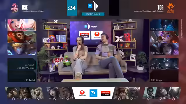 02:01:55In der zweiten Series von Team Orange Gaming gegen den Unicorns beginnt der Draft. Unicorns entscheiden sich für einen Jungler-Pick und sichern sich Yonara. TOG zeigt mit Lulu und Jinx eine interessante Botlane-Kombination, die jedoch ohne die Unterstützung von Lulu für Yonara nicht optimal funktionieren könnte. Der Moderator analysiert die Drafts und sieht TOG im Vorteil, besonders aufgrund der Toplane-Picks wie Rumble und die verbesserte Laning-Face. Jungle-Picks werden als knapp und schwierig eingestuft, was beide Teams vor Herausforderungen stellt.