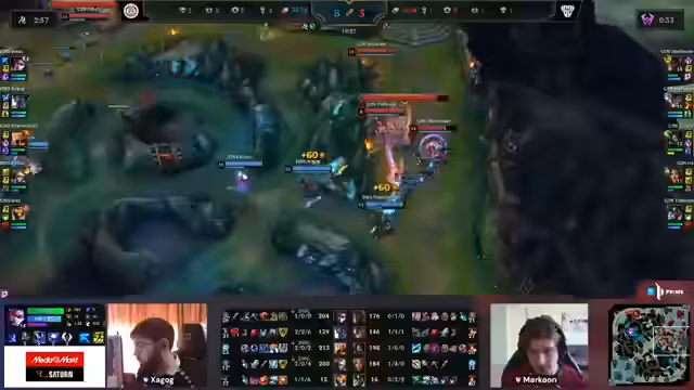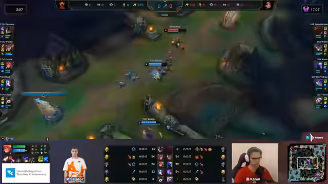 02:21:00T.O.G. zeigt eine dominante Performance mit einer 5 zu 0 Überzahl und einem 3500er Goldvorsprung. Die Kills verteilen sich über die gesamte Map, wobei T.O.G. erfolgreich Objectives mitnimmt. Lilip wird als herausragender Spieler gelobt, der immer zur richtigen Zeit am richtigen Ort ist. Trotzdem werden die Erfolge von T.O.G. als nicht unbedingt überraschend eingestuft, da die Unicorns mit Ornn und Soraka keine typischen Early-Game-Lanes gewählt hatten.