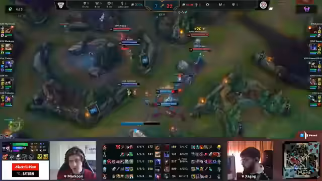 00:11:49Eintracht Spandau trifft auf G2 Nord im erwarteten Topspiel der Gruppe B. Beide Teams verstecken sich nicht und wollen frühzeitig zeigen, dass sie wach sind. Die Meta Picks wie Ezreal bei Kidui von G2 Nord und bei Eintracht Spandau sowie Arthrox und Syndra auf verschiedenen Positionen versprechen spannende Duells. Die Botlane mit Karma gegen Ezreal und Vayne gegen Sivir ist besonders wichtig. Eintracht Spandau zeigt sich stark, besonders in der Top Lane mit Xargok, während G2 Nord durch Makun im Jungle Vorteile generieren kann.