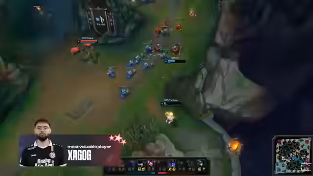 01:36:18Eintracht Spandau sichert sich ein wichtiges erstes 2 zu 0 in der Gruppenphase und manifestiert sich damit auf dem ersten Platz der Gruppe. Die statistische Entwicklung beeindruckt mit 9-4 im Jungle, 12-0 in der Mitte und 6-2 auf der AD Carry-Position. Xagok wird zum MVP der Series gewählt aufgrund seiner herausragenden Performance, besonders als Nocturne und Trundle. Er war der Motor im Team, der proaktiv nach vorne spielte und auf jede Situation reagierte. Sei es durch Kills, Vision oder Calls, Xar Gok trug maßgeblich zum Sieg bei.