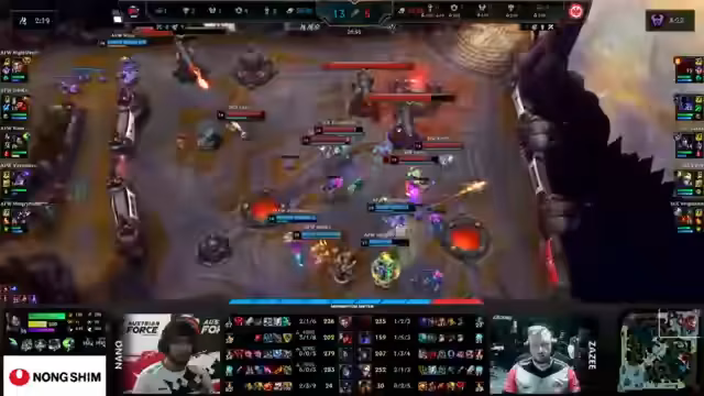 02:45:15Im Mittelpunkt des Geschehens stehen komplexe Teamfights und strategische Entscheidungen. Ein herausragendes Play von For No Reason führt zu einem 1-4-2 Ergebnis, was jedoch nicht ausreicht, das Spiel zu entscheiden. Der Fokus liegt auf dem Champion Atakan, dessen Rolle im Kampf entscheidend ist, während die Gegenseite versucht, durch gezielte Picks und Initiativen das Spiel zu drehen. Die Dynamik im Spiel zeigt, wie wichtig die Target Selection und das Timing von Fähigkeiten sind, um gegnerische Resets zu verhindern und eigene Vorteile zu sichern.