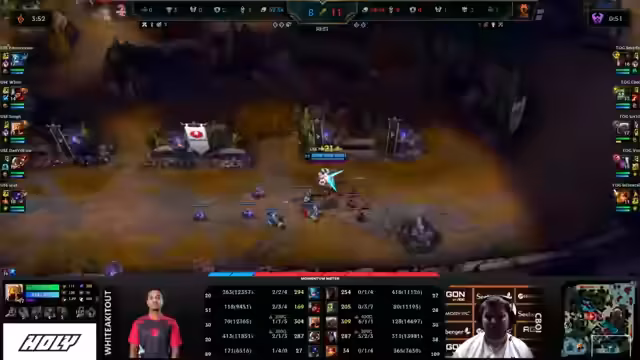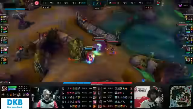 03:44:35Das Spiel eskaliert mit einem kritischen Teamfight, der durch ein smartes Play von Vendetta eingeleitet wird. Er nutzt eine Vision-Pflanze, um Oriana auszumanövrieren und zu eliminieren, obwohl Nano einen Shockwave setzte. Austrian Force nutzt den anschließenden Drachen-Fight, um durch eine perfekt zeitgesteuerte Kombination aus Maokais Ultimativer Fähigkeit und Var'us' Fähigkeiten einen Double Kill zu erzielen. Damit sichern sie sich den Soul-Drachen und bauen ihren Goldvorsprung entscheidend aus.