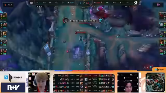 01:57:51Im Mittelpunkt des Geschehens steht der Kampf um das Herald-Objective. Eevee sichert sich dieses wichtige Ziel, was ihre Stärke im objektiven Spiel unterstreicht. Der Kampf ist geprägt von schnellen Kills und cleveren Teleport-Einsätzen vonseiten KHKs. Rebel muss defensiv seine Ultimate einsetzen, während Tokimo auf Eevees Seite eine schöne Kombo zeigt. Trotzdem gelingt es Eevee, den Support zu catchen und den Kill zu holen, was ihnen den Gold-Lead sichert.