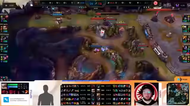 03:05:20Dank Dinos sichert sich den Herald und kontrolliert die Objectives, was es Frankfurt schwer macht, ins Spiel zu finden. Frankfurt benötigt Zeit und ein starkes Late-Game, aber Dank Dinos hat bereits jetzt einen Vorteil. Dank Dinos hat bessere Damage-Spikes und kontrolliert die Sidelanes. Ein Trade von Kills ändert nichts am Gesamtbild, da Dank Dinos weiterhin den Goldvorteil ausbaut. Agurin, der den Großteil des Leads hält, wird zum Ziel, was riskant ist. Nach 18,5 Minuten beträgt der Goldvorteil fast 5000. Dank Dinos nimmt den Herald und bricht die Midlane auf, was zu einem weiteren Turmverlust für Frankfurt führt. Dank Dinos dominiert das Spiel und macht es Frankfurt schwer, spielbar zu sein. In Minute 20 fällt ein weiterer Turm, und Dank Dinos spielt einen erfolgreichen Dive, der den Goldvorteil weiter ausbaut. Vary und Vagnarum überleben den Dive glücklich, aber Frankfurt verliert weiterhin an Boden.