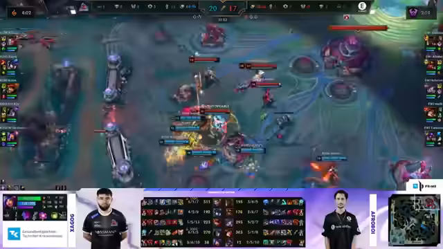 02:17:55Im finalen Kampf beweist EWI seine Standfestigkeit. Tokimo rettet sein Team mit einem genialen Move, indem er einen ultimativen Angriff von Adusto abblockt. Trotz der gewonnenen Fights ist der Druck auf EWI immens, da Rossmann seinen Split-Push perfekt ausführt. Letztlich sichert sich EWI den Sieg durch den wichtigen Sieg im letzten Teamfight, einen entscheidenden Punkt für die Saison und den Teamgeist.