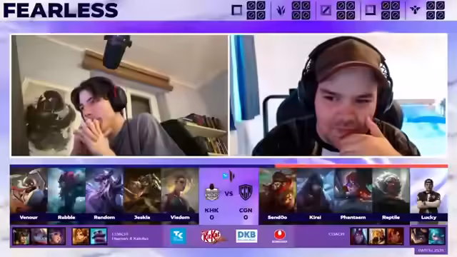 03:08:30Vor dem Spielbeginn treten technische Probleme auf, die verhindern, dass Phantasm dem Spiel beitreten kann, was zu einer ungewollten Pause führt. Eine Diskussion entsteht um den offenen Akschan-Pick von Kaufland, der bisher in der Season eine hohe Banrate hatte. Es wird analysiert, ob Akschan aufgrund neuer, besserer Gegenpicks wie Syndra oder Annie an Bedeutung verloren hat und ob dies eine Strategie ist, die andere Teams adaptieren könnten, insbesondere wenn CJN darauf vorbereitet ist, den gegnerischen Jungler zu lesen.