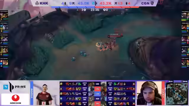 04:30:23Die Mitte des Spiels ist von großem Engagement und Teamkämpfen geprägt. Ein besonders auffälliges Play von CGM, als er mit Alistair einen erfolgreiven Dive durchführt, unterstreicht die Stärke der Frontline. CJN zeigt ebenfalls einen klaren Plan und nutzt die Synergien im Team, um erfolgreiche Engagements zu initiieren und so den Goldvorteil auszubauen und die gegnerische Basis unter Druck zu setzen.