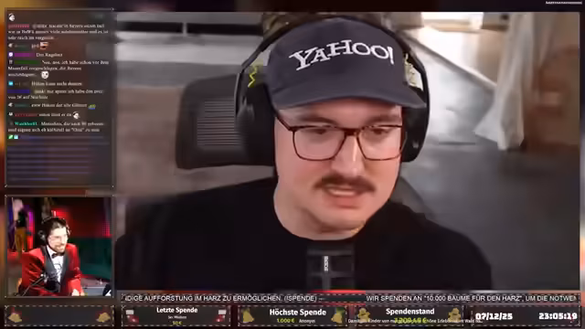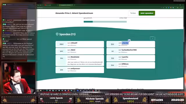 00:14:40Am 2. Adventssonntag, 02.12.2025, begrüßt prinz_live sein Publikum zum zweiten Spenden-Stream-Event des Advents. Im Kontrast zur vorherigen Woche wird es heute weniger bedrückend, aber dennoch relevant. Das Thema: Bäume und eine konkrete Aktion für 10.000 Bäume im Harz. Der Stream läuft mit kerzengesteuertem Ambiente, während der Fokus auf Umweltengagement gelegt wird.