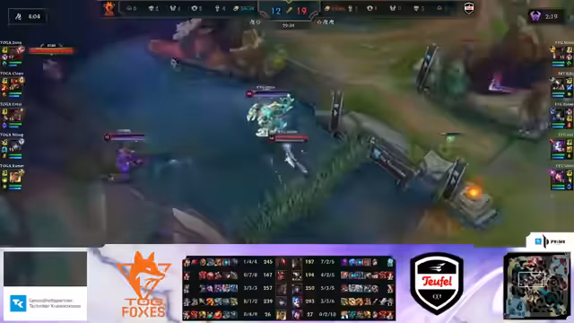 02:15:09Ein 2-Mann-Engage wird versucht, kann aber verteidigt werden, solange der Tower steht. Die Ultimate führt zu einem einfachen Solo-Kill, was die Frage aufwirft, ob der Spieler absichtlich feedet. Ein 3-Mann-Pop-Loss reicht eventuell nicht ganz aus, doch Dover kann durch seine Tankiness lange Zeit herausholen, auch wenn er letztendlich stirbt. Das Problem auf beiden Seiten ist der fehlende Follow-up. Trotz guter Schadenswerte gelingt es nicht, den Gegner zu erledigen, da dieser mit Flash entkommt. Das Spiel ist spannend und unterhaltsam, aber die mangelnde Koordination beim Abschluss der Kills ist auffällig. Eine schlechte Erfahrung mit Essen, ähnlich einer Lebensmittelvergiftung durch Kochschinken, wird als Metapher für das Scheitern im Spiel verwendet, was die psychologische Komponente des Wettbewerbs unterstreicht.
