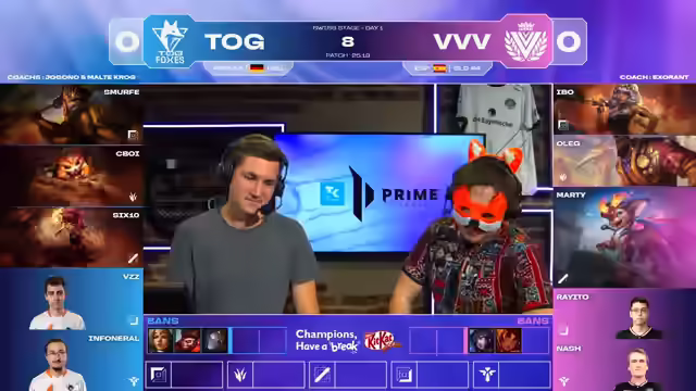 00:32:14Der EMEA Masters Summer Event 2025 startet mit einer kleinen Verzögerung, wobei Team Vidi Vici aufgrund von Client-Update-Problemen einen Bann verliert. Team Orange Gaming (TOG) erhält den First Pick. Es wird über das Outfit der Moderatoren gesprochen und die Meta des 18er Patches analysiert, wobei Assassinen wie Kiana attraktiver geworden sind. TOG, bekannt für seine erfahrene Zusammensetzung und das knappe verlorene Finale gegen Big auf der Gamescom, wird als Team mit explosivem Potenzial gesehen. Ziel ist es, sich gegen den vierten Seed aus Spanien durchzusetzen und die Prime League Teams zu unterstützen. DHL hat Trikots von Teams nicht rechtzeitig geliefert, was zu Enttäuschung führt. Die Draft-Phase wird analysiert, wobei Smolder Flexibilität in der Mitte oder auf der Botlane zugeschrieben wird, während TOG klare Rollenverteilungen hat. Der Guardio-Support wird als Match-Up-spezifisch betrachtet. Es wird überlegt, was für den Smolder-Botlane oder Smolder-Midlane gut ist. Taliyah wird rausgebannt. Es wird über einen möglichen Smolder-Mitte spekuliert. Anivia-Ban ist etwas Besonderes, da Marty diesen Champion gerne spielt. Gehle wird gelockt und Smolder ist Botch. Es wird die hohe Pryo von Jarvan hervorgehoben. Die Interaktion zwischen Jarvan-Ult und Kiana-Ult ist gefährlich. Eine Abstimmung darüber, wer dieses Game holt, wird angekündigt. Es wird betont, dass jedes Game zählt, da es sich um eine Swiss-Stage handelt. Es wird die Problematik von Best-of-One-Spielen für Prime-League-Teams diskutiert, da diese das ganze Jahr über Best-of-3 gespielt haben.