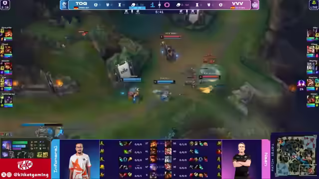 00:39:25Es wird bekannt gegeben, dass Nachwuchs erwartet wird, was zu einem spontanen Baumarktbesuch führte. Die Unterstützung für die Prime-League-Teams, insbesondere Team Orange Gaming, wird betont, mit dem Ziel, das bisher schlechte europäische Jahr für die Prime League zu verbessern. TOG wird als Favorit gehandelt, möglicherweise das stärkste Team nach dem Roster-Change bei Big. Die Erfahrung von Spielern wie Sieb wird hervorgehoben, der bereits im EMEA-Halbfinale stand. Es wird die Chemie und das Potenzial des aktuellen TOG-Teams betont. Die neue Laneshop-Meter wird vorgestellt, bei der Alistair und Junara auf der Bot-Land unterwegs sind, um ein Bot-Side-Match-Up zu verhindern. First Blood geht an Yonara. Riot Games versucht ein Jahr lang die Laneshops rauszubringen, dann bringen sie den Turbo Durpa Ultra Patch raus und trotzdem findet man einen Weg, es zu umgehen. Es wird die Aggro von Infernal Tank gelobt. First Blood wird nicht mehr extra belohnt. Ein interessanter Engage wird gezeigt, bei dem Marty einen Flash umsonst bekommt. WSX10 wird es leichter haben, da Marty seinen Flash verloren hat. Ein proaktives Early-Game von Team Orange Gaming gegen Veni Vidi Vici wird gezeigt. Es wird über die Namensgebung von Veni Vidi Vici diskutiert und eine Anlehnung an ein römisches Zitat vermutet. Ein Trade auf der Wattland geht gut aus. Der Lied wird immer größer. Marty hält seinen Dash bereit, um rauszukommen. Die Kiana nimmt einen interessanten Gang-Pfad. Wie sie sie ist jetzt schon Level 6 und hat seine Ult parat.