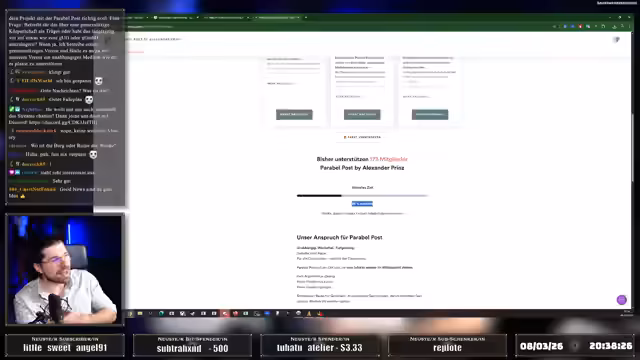 00:29:41Die Parabelpost-Abonnenten erhalten den Newsletter nicht nur per E-Mail, sondern auch direkt auf der Steady-Seite verfügbar. Der Streamer betont, dass es keinen Leistungsdruck gibt, der Inhalt wöchentlich versendet wird und wie ein Magazin nur ausgewählt gelesen werden muss. Die Ziele der Seite sind progressiv: Werden Ziele erreicht, kommen neue Inhalte wie Premium-Podcasts hinzu. Ein Hauptanliegen ist die finanzielle Sicherheit für das Team und die Unabhängigkeit von schwankenden YouTube-Einnahmen.