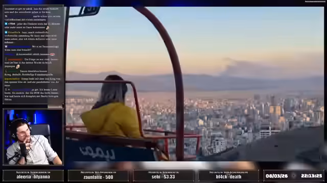 02:12:11Im Stream wurden die wirtschaftlichen Verbindungen der iranischen Elite nach Deutschland beleuchtet, insbesondere im Bereich des Immobilienbesitzes. Ein Sprecher erwähnte, dass seine Mutter im Iran, die nur über Festnetz erreichbar ist, in Sicherheit scheint. Die persönliche Nachricht der Mutter löste beim Streamer starke emotionale Reaktionen aus und weckte Kindheitserinnerungen an eine Suppe. Gleichzeitig wurde angekündigt, das Land nach dem Fall des Regimes zu besuchen, auch wenn der Zeitpunkt ungewiss ist.