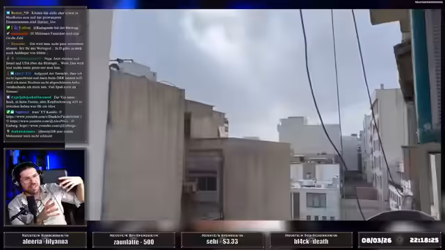 02:16:06Die militärische Lage in Teheran wird als extrem angesprochen. Die Stadt sei von fortlaufenden Luftschlägen betroffen, was dazu geführt habe, dass sich Freunde aus der Stadt zurückgezogen haben und der Streamer ständig umziehen müsse. Es gab Angriffe auf Treibstoffdepots in der Stadt, die zu apokalyptischen Szenen mit Rauchwolken und Bränden führten, die auch die Kanalisation ergriffen. Zusätzlich wird über laufende Angriffe auf die irakische Kurdistane mit US-amerikanischer Militärhilfe gesprochen.