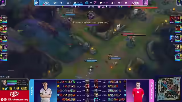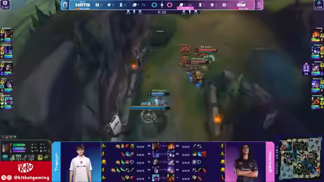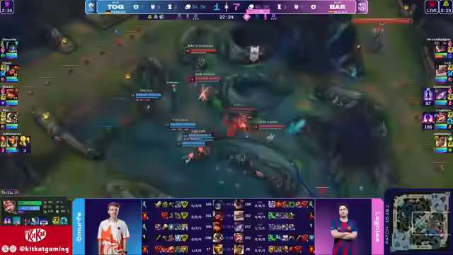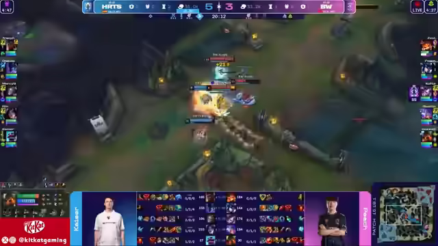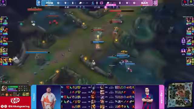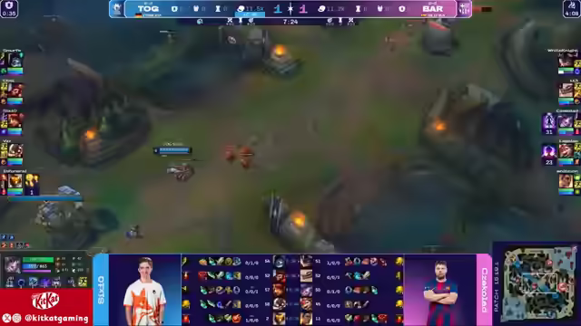 00:53:31Die Strategie dreht sich um den Aachen und das Setup für den Dragon, wobei der First Turret Contest weniger wichtig ist. Ein Rocket-Belt-Play hält einen Angriff stand. Tog eröffnet als Viererkern über die Midlane, während der Jorik die Wave hält. Seaboy steht auf dem Pinkboard bereit, und ein 3-gegen-3-Fight wird erwartet. Barca fällt eine fragwürdige Entscheidung, was Tog ausnutzt. Trotz eines Gold Leads von 3.800 versucht Barca, noch mehr Gold zu funneln, anstatt den Soulpoint zu verhindern. Harald wird in die Bot-Side-Rift gefahren. Die Nafiri macht wenig und scheint am Steuer eingeschlafen zu sein. Die Chemtech-Sold wird als nicht so schlimm angesehen, aber wenn 113 alle unter 50% Leben holt, könnte sie doch relevant werden. Syndra und Smolder lassen niemanden unter 50% Leben kommen, da sie einfach exekutiert werden. Tog hat bewiesen, dass auch 5000er Gold Leads für sie spielbar sind, wenn sie eine gute Teamfighting-Kombo haben. Die letzten Kills waren fragwürdige Einzelaktionen. Tog kennt das Risiko, wenn sie zu sehr in die Sidelanes hovern. Legolas geht ein Risiko ein, wenn er immer wieder absteppt. Smurf wird wieder angegangen und stirbt. Die Makrotechnik von Barca ist clean. Tog lässt sich aber nicht unterkriegen und macht eine kleine Atemübung. Atakan ist live auf der Bot-Set. Barca scheint erstmal ruhig zu sein und bewegt sich Richtung Top-Seiten.