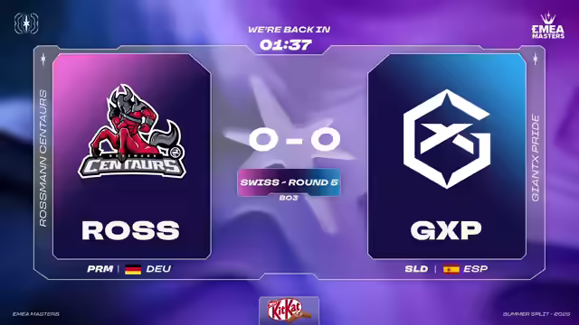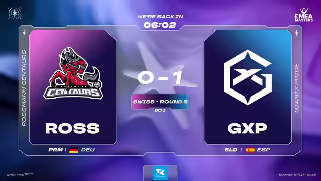 04:56:15Es wird ein Flank in die Mitte erwartet, wobei der Sion von Grün-Weiß die größte Bedrohung darstellt. Das Moonlight Vigil soll nicht einfach getankt werden. Sargog ist vom Team getrennt, während Bad Lulu hinten agiert und Sonya Schaden erleidet. Kanin wird angegriffen, kann aber nicht attackiert werden und verursacht noch Schaden. Ein wichtiger Root gegen Feisty, aber Aphelios verursacht enormen Schaden und erzielt einen Quadra-Kill. Trotz guter Sequenzen der Rossmann Centaurs führt dies zu einem 0-1 Rückstand. Der stark gespielte Aphelios dominiert den Fight. Rossmann muss die nächsten beiden Spiele gewinnen, um das Best-of-Three nicht zu verlieren. Das Spiel war knapp und hätte gewonnen werden können, aber es gab riskante Tunnel-Fokusse auf Farad. Es waren Millimeterentscheidungen, die nicht optimal liefen. Es wird erwartet, dass Rossmann aus diesen Fehlern lernt und den Aphelios nicht erneut unterschätzt. Mindestens drei Spiele werden erwartet, und Rossmann hat gezeigt, dass sie auf Augenhöhe mitspielen können. Es folgt eine Pause von zwölf Minuten, bevor es mit dem zweiten Spiel weitergeht.