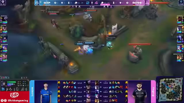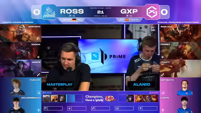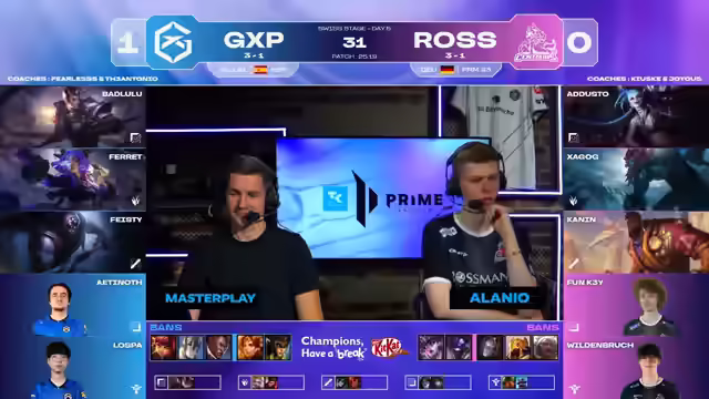 06:33:37Ein Engage von Losbar scheitert, und der Baron wird auf 6000 reduziert. Rossmann muss schnell in die Base und darf sich nicht von der Tristana chasen lassen. Funky eliminiert die Tristana, was Hoffnung gibt. Rossmann sichert sich den Nashor und holt den Goldlead zurück. Funky erreicht Level 16. Rossmann macht Fortschritte, muss aber ruhig bleiben. Der Drake wird kurz gestartet und dann aufgegeben. Ein Inhib Tower wird eingenommen. Wildenbruch wird wiederholt zum Ziel und stirbt. Rossmann hält die Mitte Tower, während Giant X einen Top Tower einnimmt. Wildenbruch versucht, mit der Pyke-Ult aus der Javan-Ult zu entkommen. Es wird betont, dass Wildenbruch seinen Moment haben wird. Losbar versucht erneut, einen Kill zu erzielen, scheitert aber. Rossmann wird aus der Mitte rausgesaugt, was zum Verlust des Towers führt. Es kommt zu einem Even Game State nach 31 Minuten. Der nächste Baron ist entscheidend. Etinoff wird fast getötet. Badlulu wird von Xaroknome angegriffen und stirbt. Die Syndra eliminiert Funky, was das Spiel für Giant X entscheidet. Rossmann verliert in einem knappen Best-of-Three.