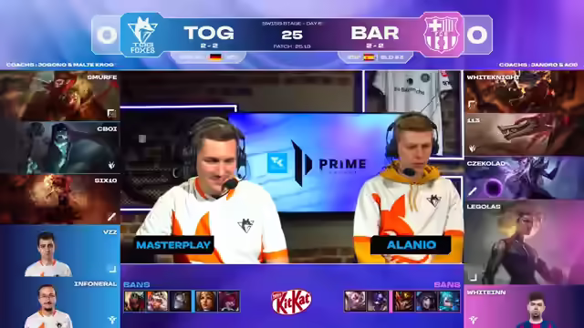 00:37:20Die frühe Spielphase des Spiels Tog gegen Barca wird analysiert. Es wird festgestellt, dass es sich um ein offenes EMEA Masters handelt, in dem jeder jeden schlagen kann. First Blood wird knapp verpasst, aber ein Flash wird erzwungen. Die Bedeutung des Clearings für Nafiri wird hervorgehoben, und der maximale Respekt von 113 gegenüber Tog wird betont. Es wird ein möglicher Late Invade oder ähnliches erwartet. Die Prio auf der Botlane wird diskutiert. Team Orange Gaming zeigt frühe Agency auf der Syndra gegen Annie. Eine kurze Pause unterbricht den Stream. Nach der Pause wird der Fokus auf Smolder gelegt, dessen Scaling-Potenzial und die Bedeutung der Stackanzahl hervorgehoben werden. Ein Gank auf Sixten geht gut für Team Orange Gaming aus, was ein wiederholtes Muster offenbart. Die Analysten und Coaches nutzen die vielen Matches auf demselben Patch, um Spielzüge zu scouten und Patterns zu erkennen. InfoNeral macht viel Arbeit auf dem Bart, und Legolas wird stark gechannt. Tog sichert sich den Dragon und Harald, und es wird ein Full Swap erwartet. Die Ultis sollen aggressiv genutzt werden, aber die Flashes von Barca müssen respektiert werden. Bis jetzt ein guter Start, aber es gibt noch keinen Grund, sich auszuruhen.