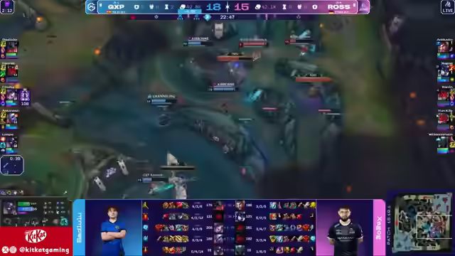 04:49:10Rossmann spielt gegen den Baron Buff und nimmt einen Tier 2 Tower ein, aber Kanin wird getötet. Die Kommentatoren analysieren Kanins Item-Build und betonen, dass der Way eine Gefahr für ihn darstellt. Trotz eines All-In-Versuchs und eines Teamfight-Wins kann Rossmann nicht viel mehr erreichen. Beide Teams haben nun drei Drakes, was bedeutet, dass es in fünf Minuten um die Soul geht. Nach einem weiteren Sion-Ult und einem verpassten Baron-Steal durch Xhago gerät Rossmann in Schwierigkeiten. GiantXPride sichert sich den zweiten Nash. Die Kommentatoren betonen, dass es sich um das gleiche Team wie Big handelt, das bereits qualifiziert ist. Rossmann hat aber noch alles in der Hand und kann das Spiel drehen. Die Kommentatoren analysieren das Positioning von RT North und betonen die Bedeutung der Soul für beide Teams. Sie loben das Vision-Game und die Tools von Rossmann, um den Baron zu kontrollieren. Xargon und Kanin geraten in einen 2 gegen 3 Kampf, aber können entkommen. GiantXPride sichert sich den Nash und Xhago entkommt mit wenig Leben.