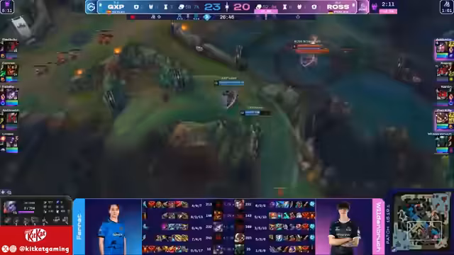 04:25:59Das Spiel entwickelt sich zu einem engen Kampf, bei dem beide Teams versuchten, die Oberhand zu gewinnen. Es wurden mehrere Fights stattgefunden, die zu Kill-Swings führten. Rossmann gewann einige wichtige Fights und erlangte Goldvorteil. Es wurden Objekte wie der Drake kontrolliert und es kam zu einem entscheidenden Kampf um den Baron Nashor. Rossmann konnte diesen sichern, was zu einem erheblichen Vorteil führte, und nutzte anschließend die Baron-Power, um den Turm der Mid-Lane zu zerstören und das Spiel zu ihrem Vorteil zu entscheiden.
