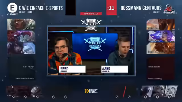 04:23:32Das fünfte Spiel des Tages zwischen EWI und Rossmann beginnt, bei dem beide Teams einen Sieg benötigen, um ihre Ausgangslage in der Gruppe A zu verbessern. Nach einem ungewöhnlich killreichen Early Game zeigt sich Rossmann im Vorteil. Analysten heben die Rolle des Top-Laners hervor, dessen solides Spiel das Fundament für den Lead bildet. Bei EWI werden die Stärken in Teamfights und ihre Fähigkeit, Spiele trotz Nachteilen zu drehen, hervorgehoben, was auf eine gute Teamchemie hindeutet.