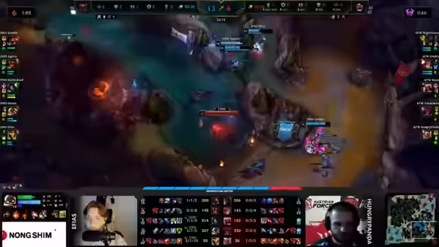 01:15:50BIG hat den Druck auf der Map und zwingt TORQ in die eigene Base zurück. Für BIG reicht ein einziger Win, um sich direkt fürs Halbfinale zu qualifizieren. Atakan wäre noch ab, könnte man dann als fließendes Play Richtung Baron vielleicht nutzen, wenn man das Ganze machen möchte. Ying will drei bis vier Items auf der Sivir haben. Ein optimistischer Poppy-Ult wird erwähnt. Man hält hoch weiterhin aus dem River raus. Am Ende reicht's für den Atakan. Drake ist jetzt ab, Seaboy ist da als erster dran. Alles in die Waagschale zu werfen für den zweiten Cloud Dragon, ist auf jeden Fall spannend. BIG muss hier eigentlich auch gar nicht unbedingt in die Bot-Side reinmoven. Man kann versuchen, die Camps zu contesten oder beziehungsweise zu verteidigen. Und da einfach in die gleiche Kerbe weiter einzuschlagen, wird hier TOG nach und nach das Licht ausknipsen. Es wäre eine Möglichkeit für BIG, mit dem Withdraw da reinzuspielen. Scheldt mit, der kommittet auch rein und zwar mitten rein in den Enemy. Und der kauft wahnsinnig viel Zeit. Der Fakt, dass er mit dem Flash auch nochmal rauskommt, ist absolut bodenlos. Am Ende ist es ein Kill für LeBron.