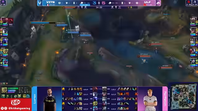 02:32:30Im späteren Spielverlauf setzt Ulf den Fokus auf das Ersteigen von Objektiven, insbesondere den ersten Drachen, der völlig unbeanstandet genommen werden kann. Die Teamkämpfe sind hart umkämpft und oft ausgeglichen. Ein entscheidender Fight am inhibitor-Tower von Ulf endet mit einem schlechten Trade für Vitality DB, die den Turk und mehrere Spieler verlieren, aber dennoch eine Goldführung behaupten können.