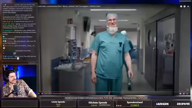 00:10:10Der Streamer begrüßt die Zuschauer und hebt den beeindruckenden Spendenerfolg des vorherigen Streams hervor, bei dem 21.425 Euro für einen Krankenwagen in der Ukraine gesammelt wurden. Er bedankt sich dafür und kündigt einen heute bewusst entspannteren Stream mit Borgen-Content an, da die Community einen Aus verdient hat.