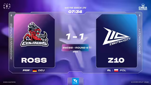Der sechste Tag der EMEA Masters Swiss Stage brachte Klarheit im Kampf um die Playoffs. Rossmann Centaurs und Unicorns of Love Sexy Edition setzten sich durch und sicherten sich die Qualifikation. Während Rossmann seine Serie gegen Zero Tenacity mit 2-1 gewann, kämpften die Unicorns nach einem deutlichen Auftaktsieg noch einen knappen Sieg gegen Senji Esports heraus.