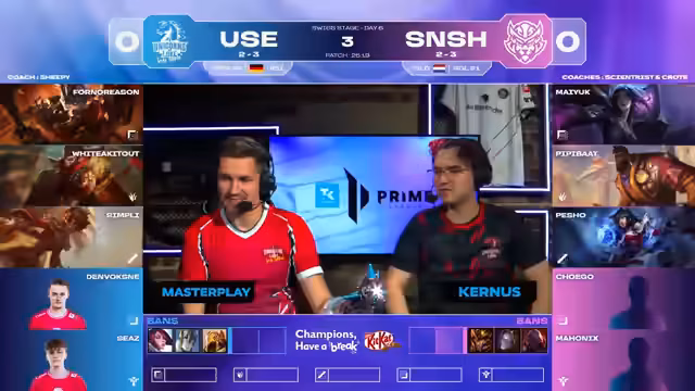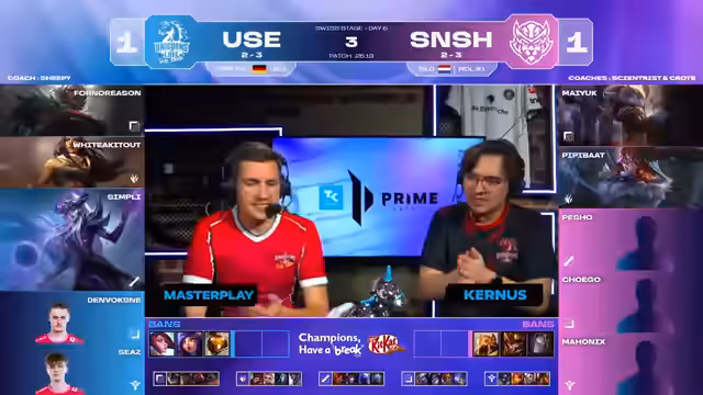 07:02:51Das dritte Spiel zwischen Unicorns of Love und Shenji Esports ist ein Ausscheidungsduell. Das Verliererteam scheidet aus dem Turnier aus, der Sieger qualifiziert sich für die letzte Runde der Swiss Stage. Der Draft im Fearless-Modus wird als sehr hart und tough beschrieben. Die Unicorns streben an, ihre Siegesserie mit einem starken Draft mit For No Reason fortzusetzen, während die Deutschen auf ein mögliches Duell gegen Los Ratonus hoffen.