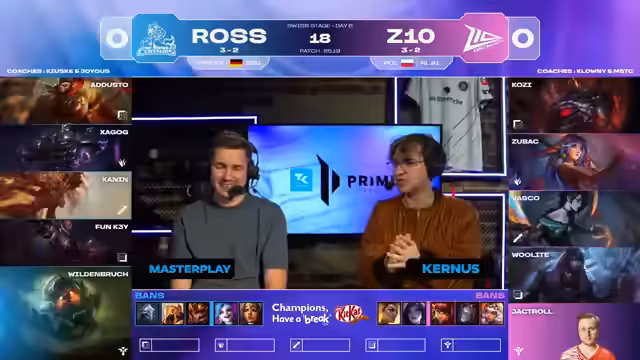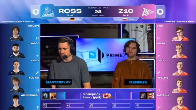 02:10:33Nach der dramatischen Serie kommentiert der Sprecher die Entscheidung des Sixten als geplant und erfolgreich. Der Fokus verlagert sich nun sofort auf das nächste Best-of-Drei zwischen Rossmann und Zero Tenacity. Es wird die Bedeutung dieses Spiels für die Playoffs-Qualifikation betont. Rossmann steht mit 3-2 und muss gewinnen. Der Kommentator äußert seine Enttäuschung über die Leistung der polnischen Ultraliga, hofft aber dennoch auf gutes Spiel und wünscht den Spielern viel Glück. Die Pause wird als sehr kurz beschrieben.