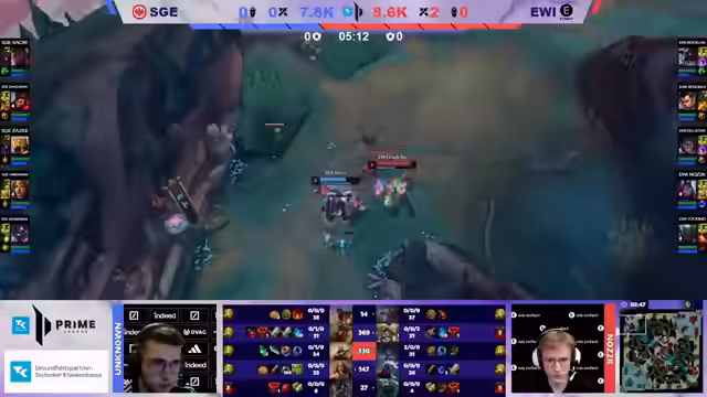 00:07:47Bevor das Spiel beginnt, wird der Draft beider Teams im Detail besprochen. Eintracht Frankfurt setzt auf ein klassisches Front-to-Back-Lineup mit starkem Late-Game-Potenzial, während EWI auf einen aggressiven Snowball-Draft mit Champions wie Pantheon und Renekton setzt, um das früh zu entscheiden. Die Caster sind sich einig, dass Frankfurts Draft auf dem Papier etwas runder und konsistenter wirkt, während EWIs Draft stark von der Execution im frühen Spiel abhängt. Die Prognosen gehen leicht in Richtung Eintracht Frankfurt, da ihr Draft mehr Sicherheit für längere Spiele bietet.