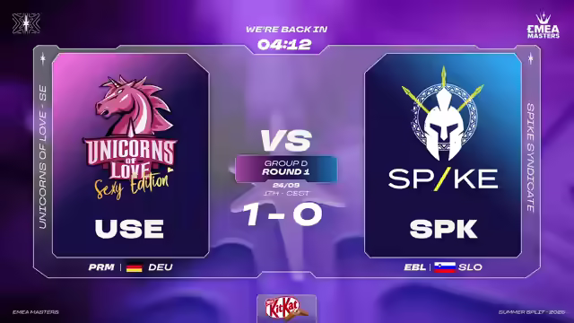 Im ersten Spiel der EMEA Masters LCQ besiegen die Unicorns of Love Spike Syndicate. Trotz anfänglicher Schwierigkeiten stabilisieren sie sich und nutzen den Baron Nashor, um Druck auszuüben. Ein entscheidender Teamkampf in der Botlane führt zum Sieg. Die Unicorns adaptieren sich gut an die Voidgrubs und sichern sich Vorteile. Spike wird als gefährlicher Gegner respektiert.