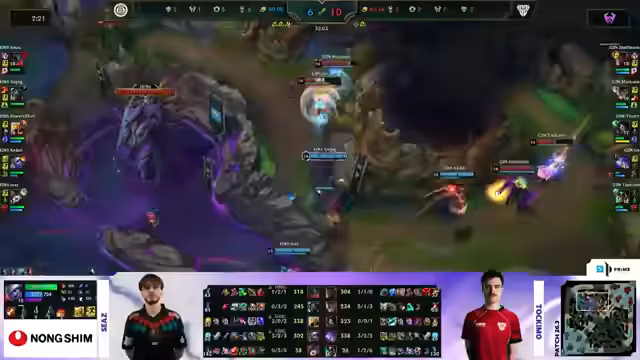 03:17:59Nach einem Shutdown von G2 Nord durch einen Face-Check von Seas, können beide Carries von Spandau, Power of Evil und Kedui, ins Spiel zurückfinden. G2 Nord behält zwar weiterhin den Goldvorteil, dieser schmilzt jedoch deutlich. Spandau entscheidet sich, den Baron Nashor zu kontrollieren. In einem langen Teamfight nutzen sie ihre stärkeren Disengage-Tools, um G2 Nord zu überwältigen und den Baron zu sichern. Dies wird zum Wendepunkt im Spiel, da Spandau mit dem Buff und Void Grubs eine massive Powerplay-Option erhält.