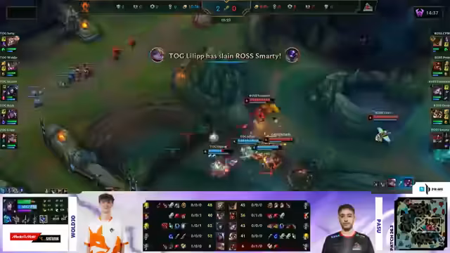 04:04:43Durch den frühen Kill und gutes Map-Play etabliert TOG einen massiven Snowball. Die Kommentare heben hervor, dass TOG mit gezielten Rotations und diversen Plays einen Goldvorsprung von mehreren tausend Gold aufbaut. Während Zayet weiterhin ein zentraler Faktor ist, erarbeitet sich auch der AD Carry Ryuk von TOG einen signifikanten Vorteil. Die Kommentatoren vermerken, dass Rossmanns Versuche, dem Druck durch frühe Aggression entgegenzuwirken, konterproduktiv sind und ihre Scaling-Strategie untergraben.