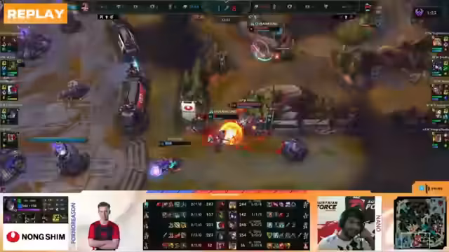 04:40:20CGN zeigt im Midgame große Dominanz, indem sie sich Ressourcen aus dem gegnerischen Jungle holt und immer noch dreist im Gesicht von EWI agiert. Das Kommentarpanel stellt fest, dass EWI mit dem großen Goldvorteil eigentlich das Spiel hätte beenden müssen, doch ihnen fehlt es am Makro-Spiel. CGN nutzt dies und zwingt EWI in langschleichende Kämpfe, die das Spiel verlangsamen. Der Druck bleibt auf EWI, die trotz aller Vorteile das Spiel nicht zu Ende spielen können.