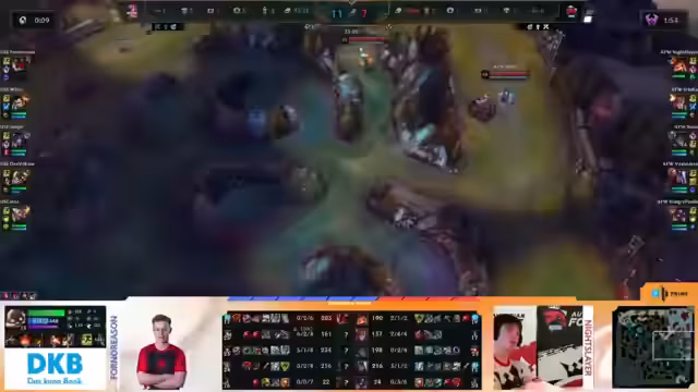 01:54:29Die Kampfhandlungen konzentrieren sich auf einen wichtigen Drachenkampf. White von AFW überleibt knapp mit wenig Lebenspunkten, während Hangry Panda von Unicorns aggressiv flankiert. Ein Versuch, den Drachen mit Teleport zu kontrollieren, scheitert. Die Kombination von Xinsau erzielt dabei einen Kill, was Unicorns kurzzeitig eine Drachenkontrolle ermöglicht. Dennoch bleibt die Situation unklar, da das Team zu weit in der gegnerischen Formation steht und keine reale Chance auf den Sieg sieht.